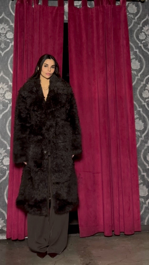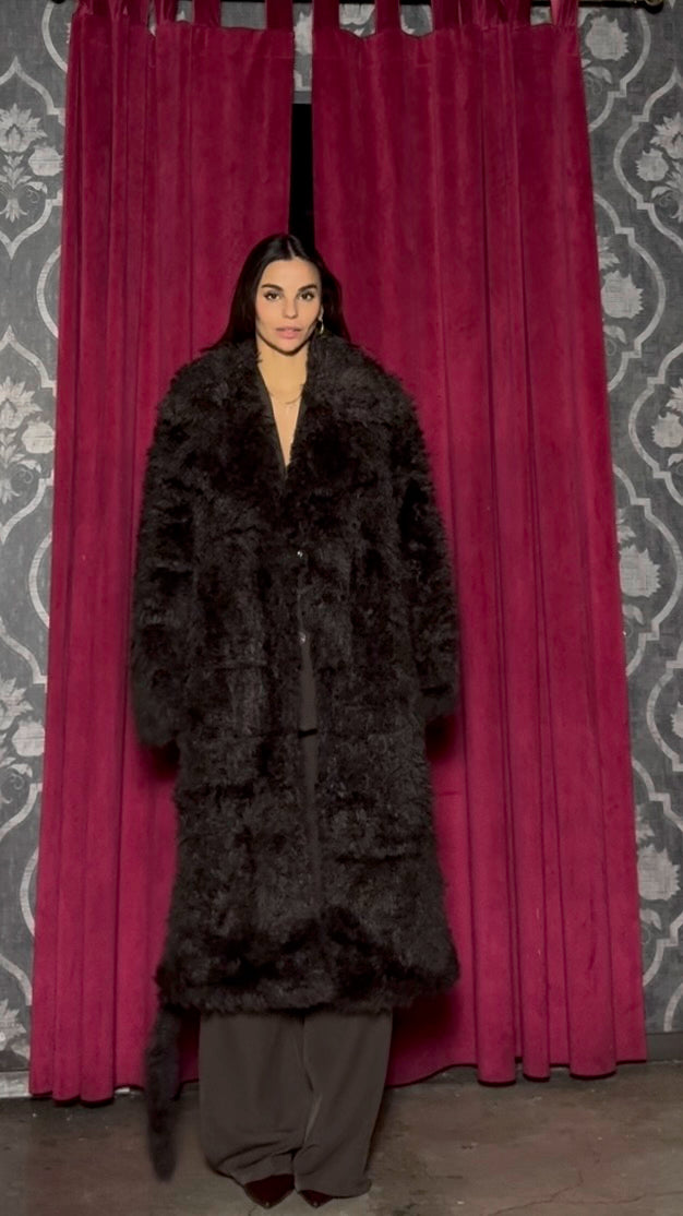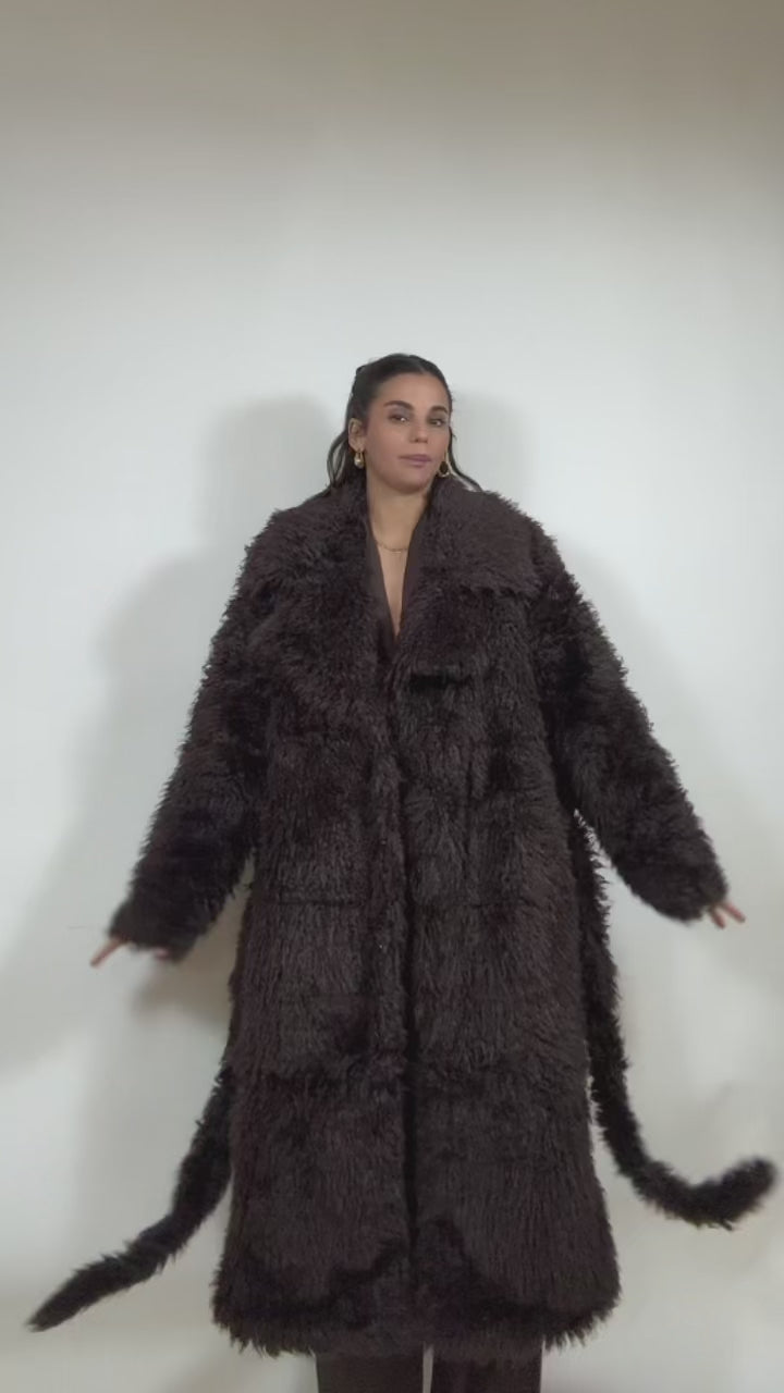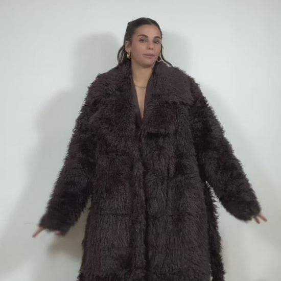 ecopellicia con collo ampio a rever, oversize . Linea dritta,
