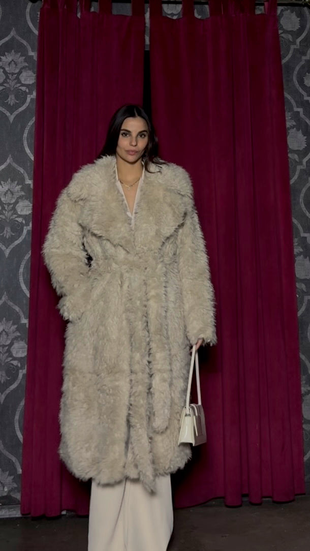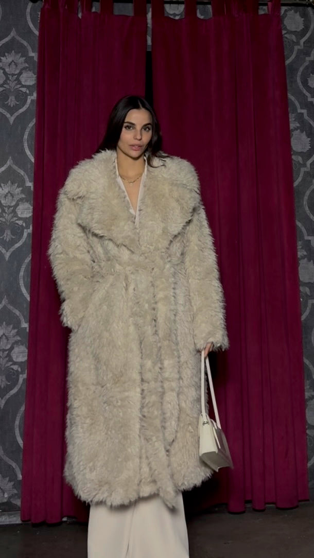 ecopellicia con collo ampio a rever, oversize . Linea dritta oversize e tasche laterali