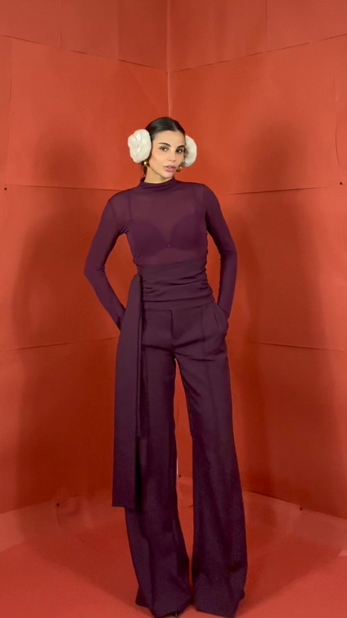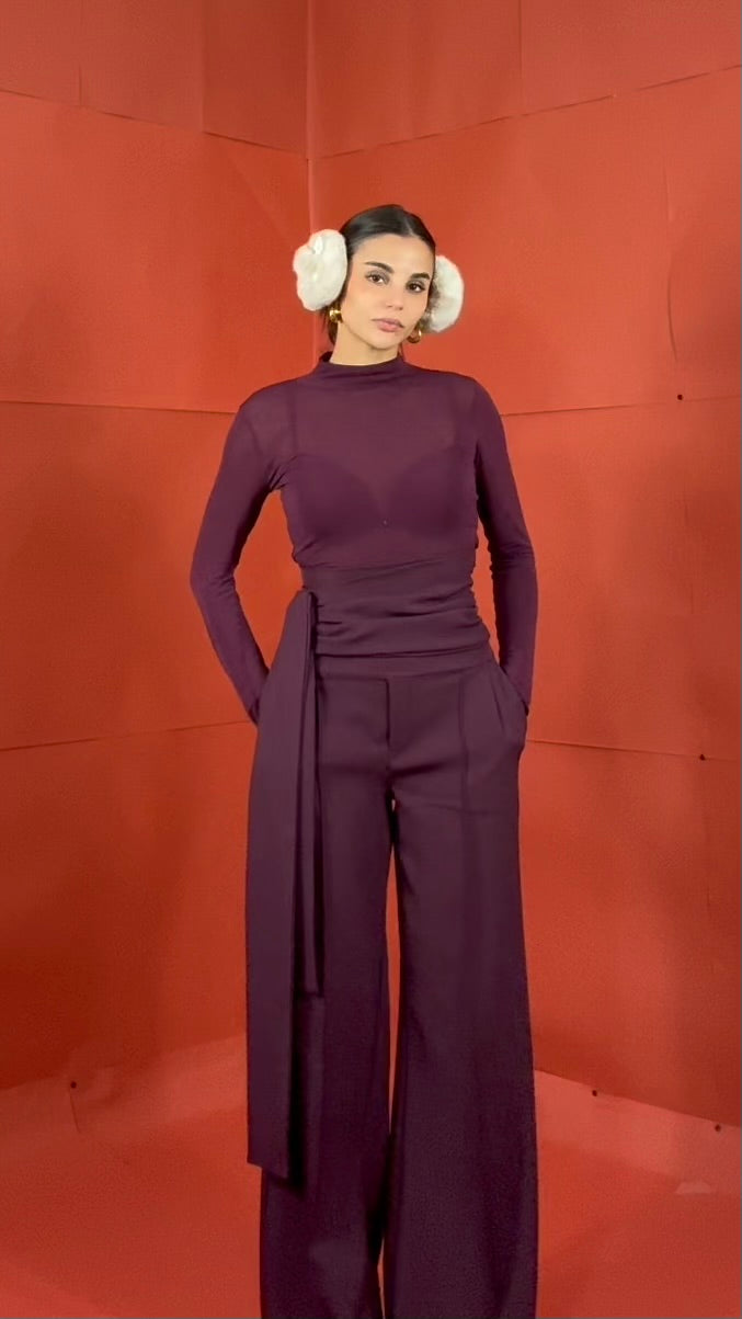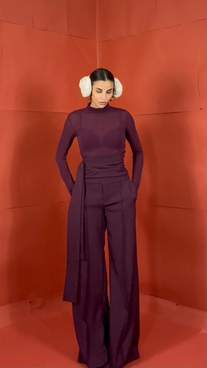 Pantalone a gamba ampia e dritta, con chiusura laterale a zip invisibile. Linea pulita, punto vita regolare e pannello frontale liscio senza cuciture visibili. Tasche inserite nei fianchi. Caduta fluida e struttura compatta che mantiene la forma.