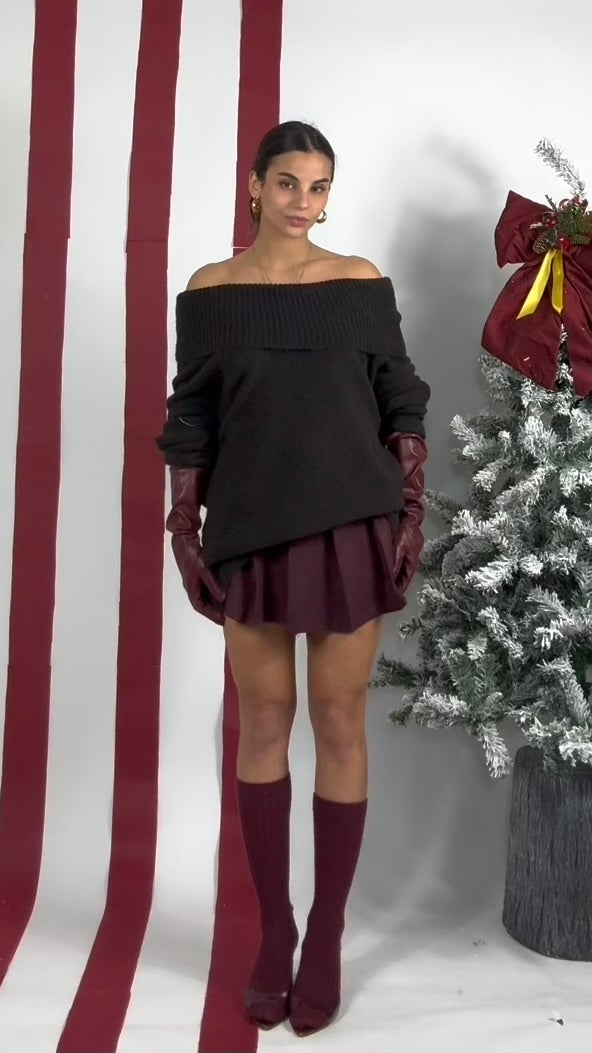 Maglione morbido a spalle scoperte con ampia balza risvoltata sul décolleté. Caratterizzato da una linea over e maniche lunghe, avvolge la figura con eleganza mantenendo un’allure rilassata e femminile. Il tessuto caldo e soffice lo rende perfetto per la stagione fredda, mentre il design off shoulder aggiunge un tocco sensuale e raffinato.